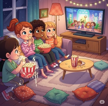 — Crianças, já estou levando a pipoca! – mamãe gritou da cozinha.
