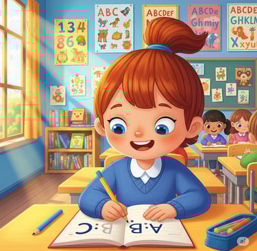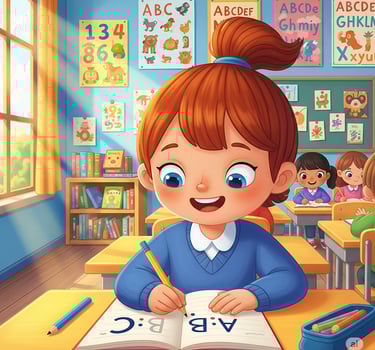 Adorei minha classe e sentar na minha carteira. Abri meu caderno e escrevi as primeiras letras do alfabeto.